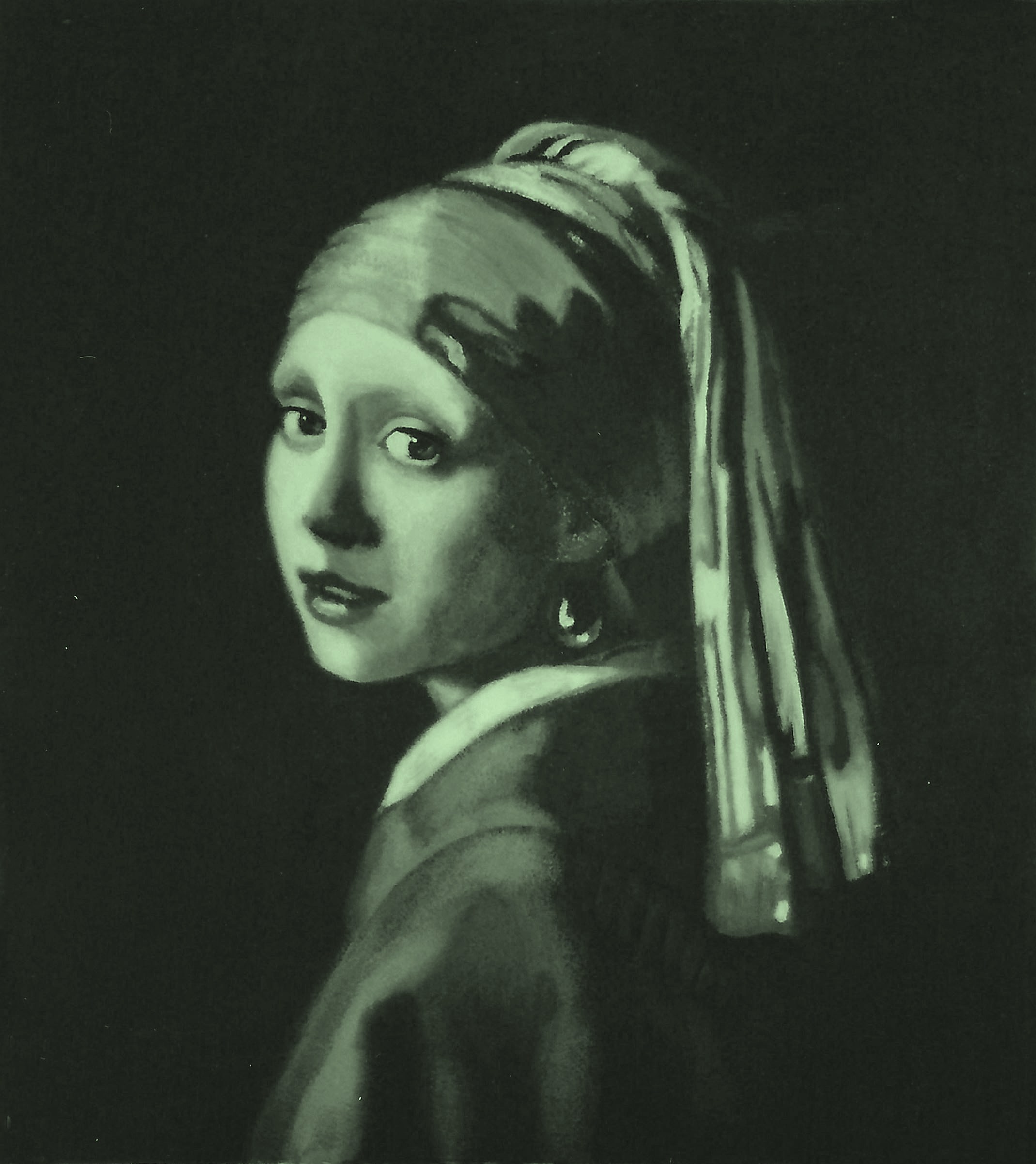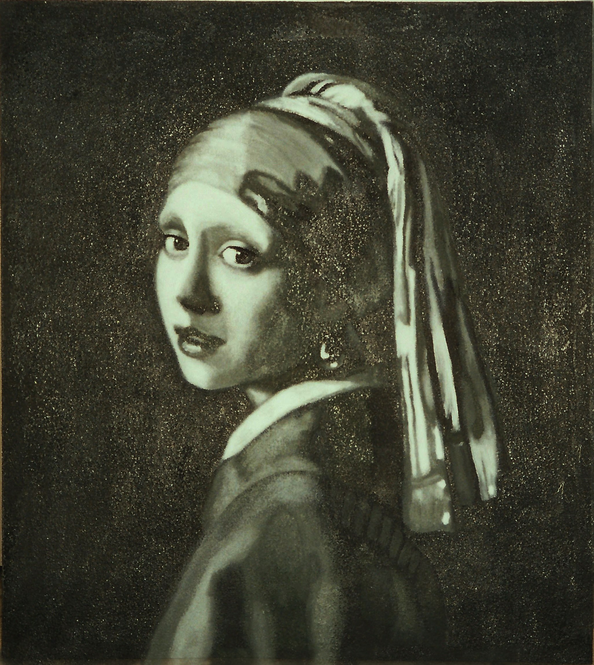 When inking, refer to the grayscale printout of the Old Master artwork you are duplicating. Ask yourself, “Where are the black areas located on this painting?” As you identify them, no matter how small, that’s where you put ink. Ink everything that is receiving no light. Forget what object you are painting and just look for values, remembering to refer to the photo and not your acetate sketch.