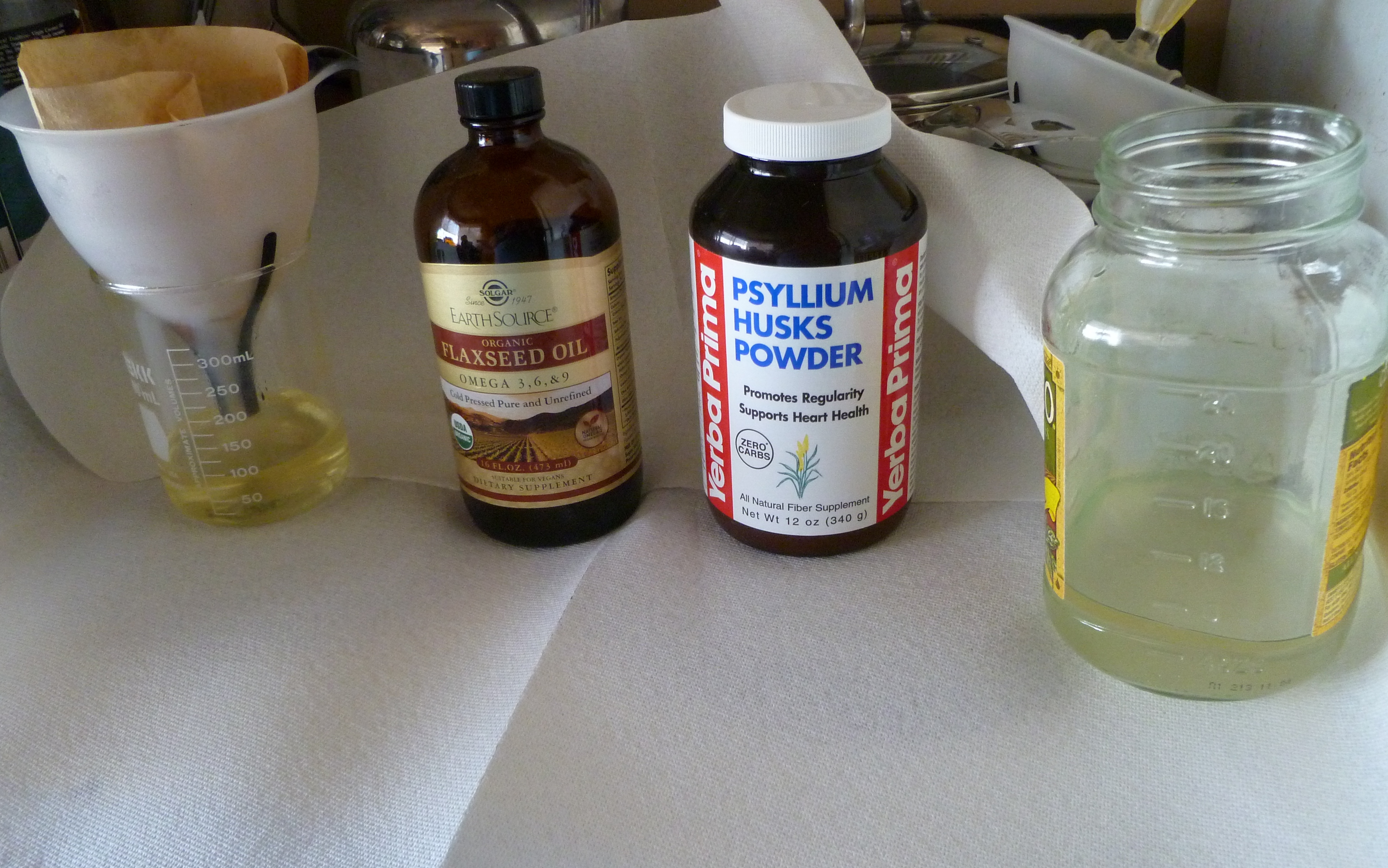 Still Filtering, Flaxseed Oil, Psyllium Powder, Freshly Cleaned Linseed Oil